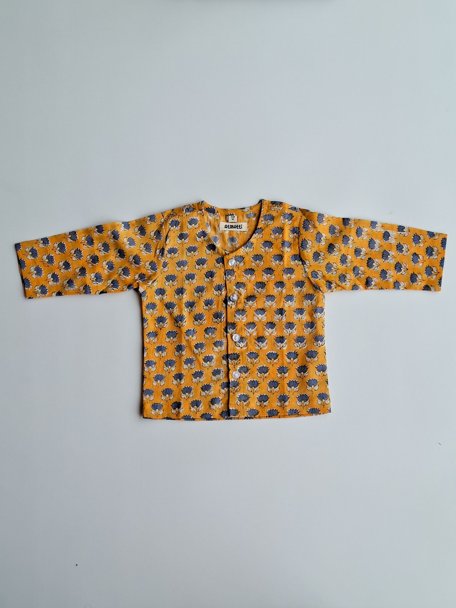 The jhabla features traditional handblock printed lotus